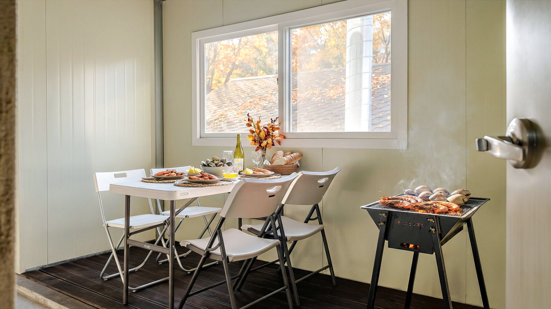 - 집기품목 : 욕실용품, 남녀공용, TV, 금연, 냉장고, 에어컨, 전기밥솥, 취사시설/도구, OTT, 샴푸, 세면도구, 바디워시, 드라이기, 린스, 와이파이, 인덕션, 전자레인지, 일산화탄소 감지기, 식탁, 개별바비큐, 커피포트, 타월, 산전망